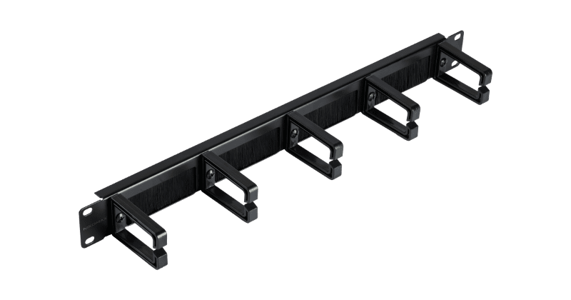 NMC-OP450-2 has found its second wind twice. The new NMC-OP530H-1U-BK-2 is similar to its predecessor, but in addition base design is improved with holes. NMC-OP530HB-1U-BK-2 is the second option to choose from, additionally equipped with a brush input on the support bar. The brush input allows to output cords into cabinets and racks, and also protects from dust. The useful depth of the rings is 53 mm.