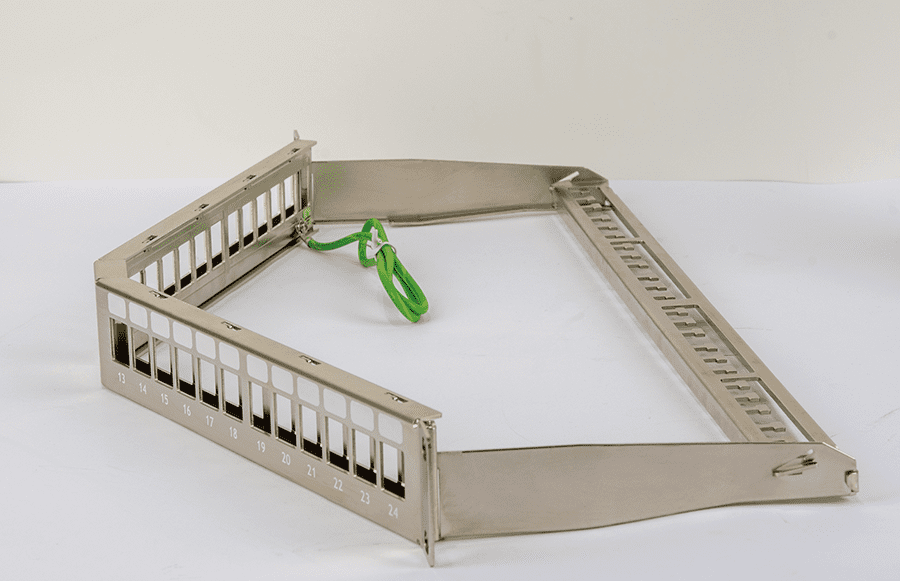 This patch panel differs slightly in size. It’s all about a mechanism that activates a signal transmission from cable to next network element. Inside there is a printed circuit board with a specific copper pattern that starts the mechanism.